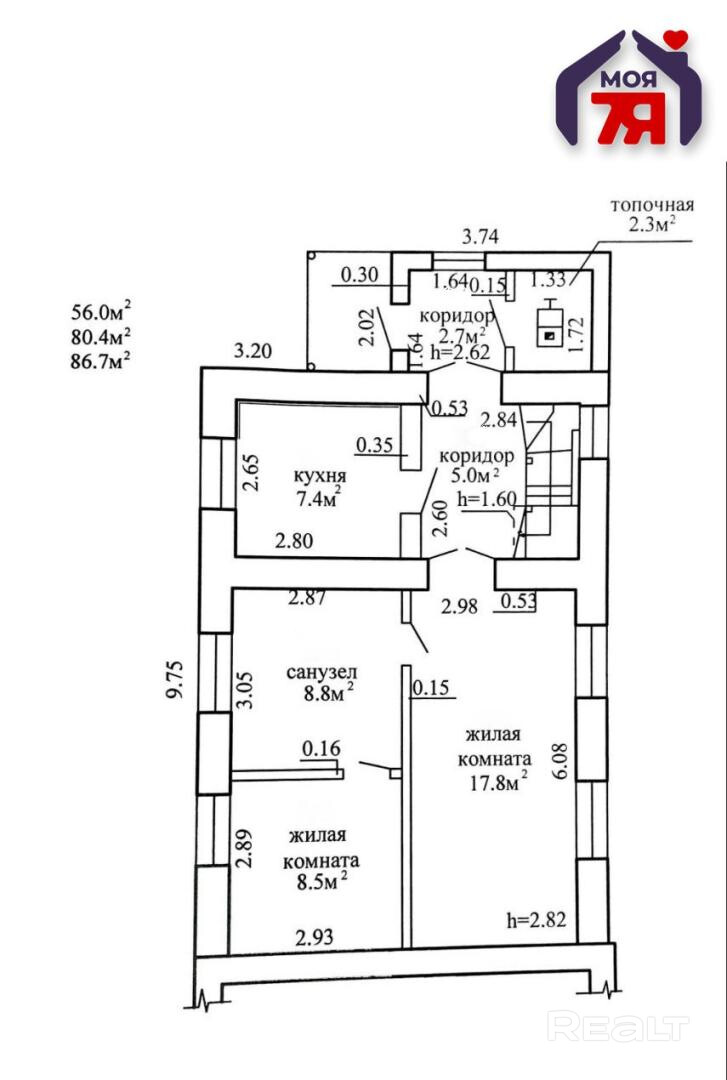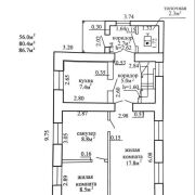 -Общая площадь жилья составляет 86,7 м2, из которых 56 м2 - жилая.