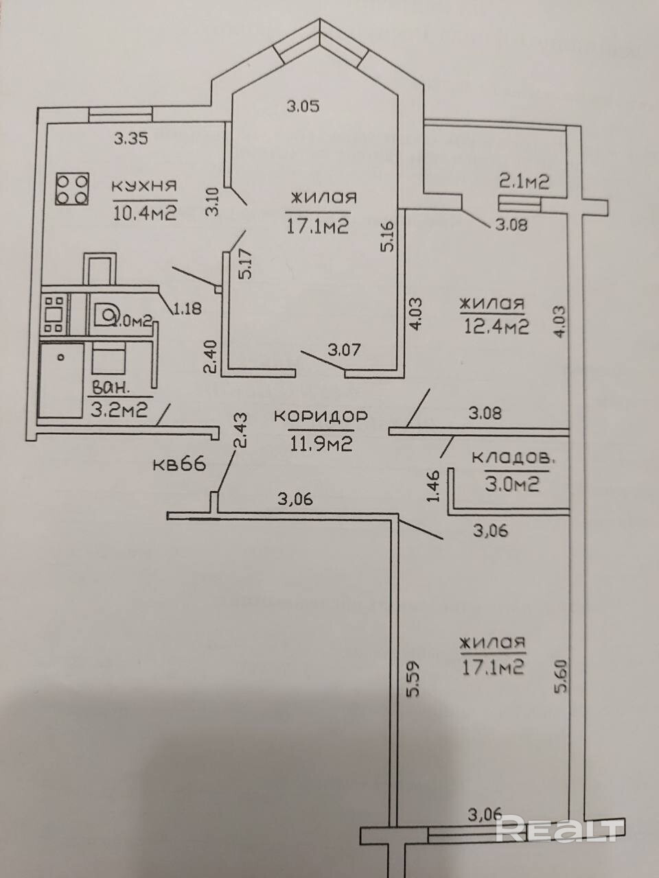Квартира находится по адресу ул.Шаранговича 55 на 9 этаже в 9-этажном доме с тех. этажом. Общая площадь по СНБ 78,2 м2, жилая – 46,6 м2, кухня порадует любую хозяйку и разместит всю семью - 10,4 м2.