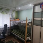 - В большой спальне встроен большой шкаф-купе на всю стену, который служит как комфортная гардеробная. В детской двухъярусная детская кровать , рабочий стол и шкаф-купе.