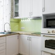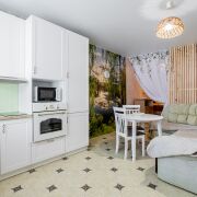 Кухня оборудована современным оборудованием: ж/шкаф, эл.плита, печь СВЧ, вытяжка, стальная мойка с шумоизоляцией дна, двухкамерный холодильник.