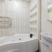 В квартире выполнен современный ремонт. Новое оборудование с/узлов с гидромассажной ванной, раковиной, стиральной машиной, унитазом и гигиеническим душем.