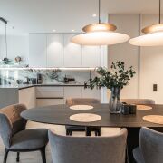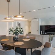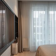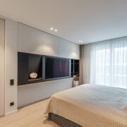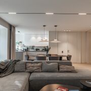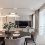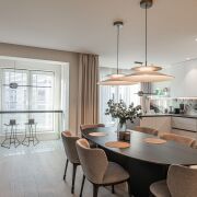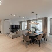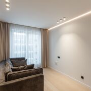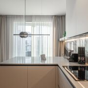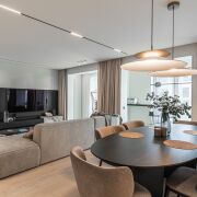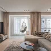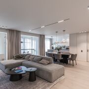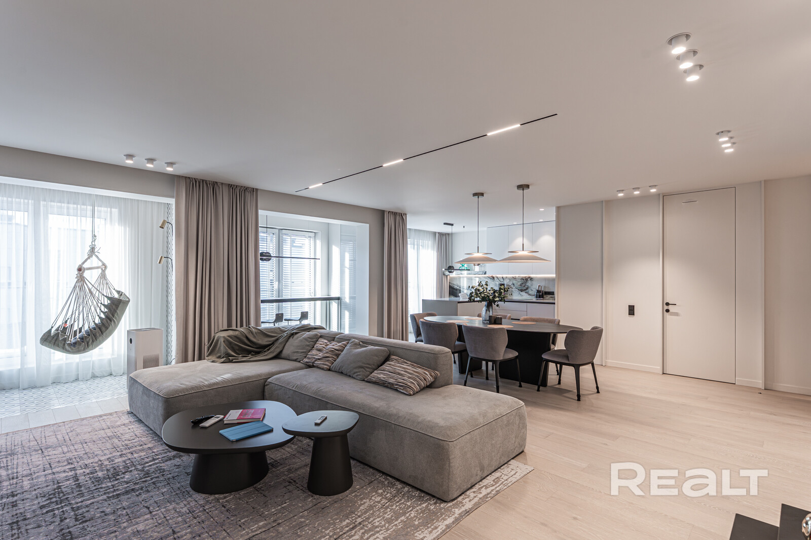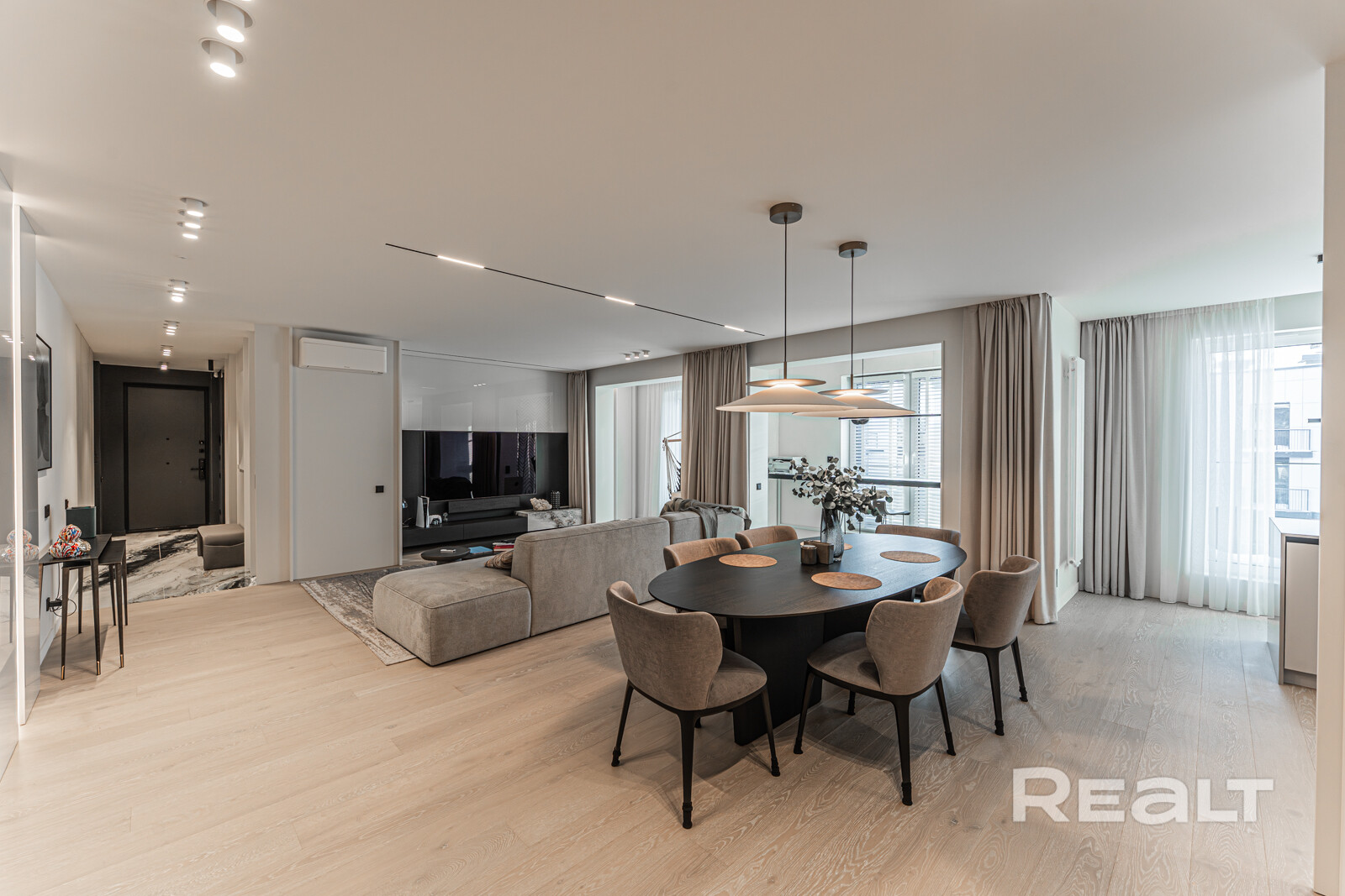 Квартира с идеальной для жизни планировкой: состоит из просторной кухни – гостиной на 55 м.кв.; 2 изолированные комнаты, одна из которых мастер-спальня с гардеробом и собственным санузлом; гардеробной в коридоре и гостевой санузел. Квартира очень светлая и теплая.