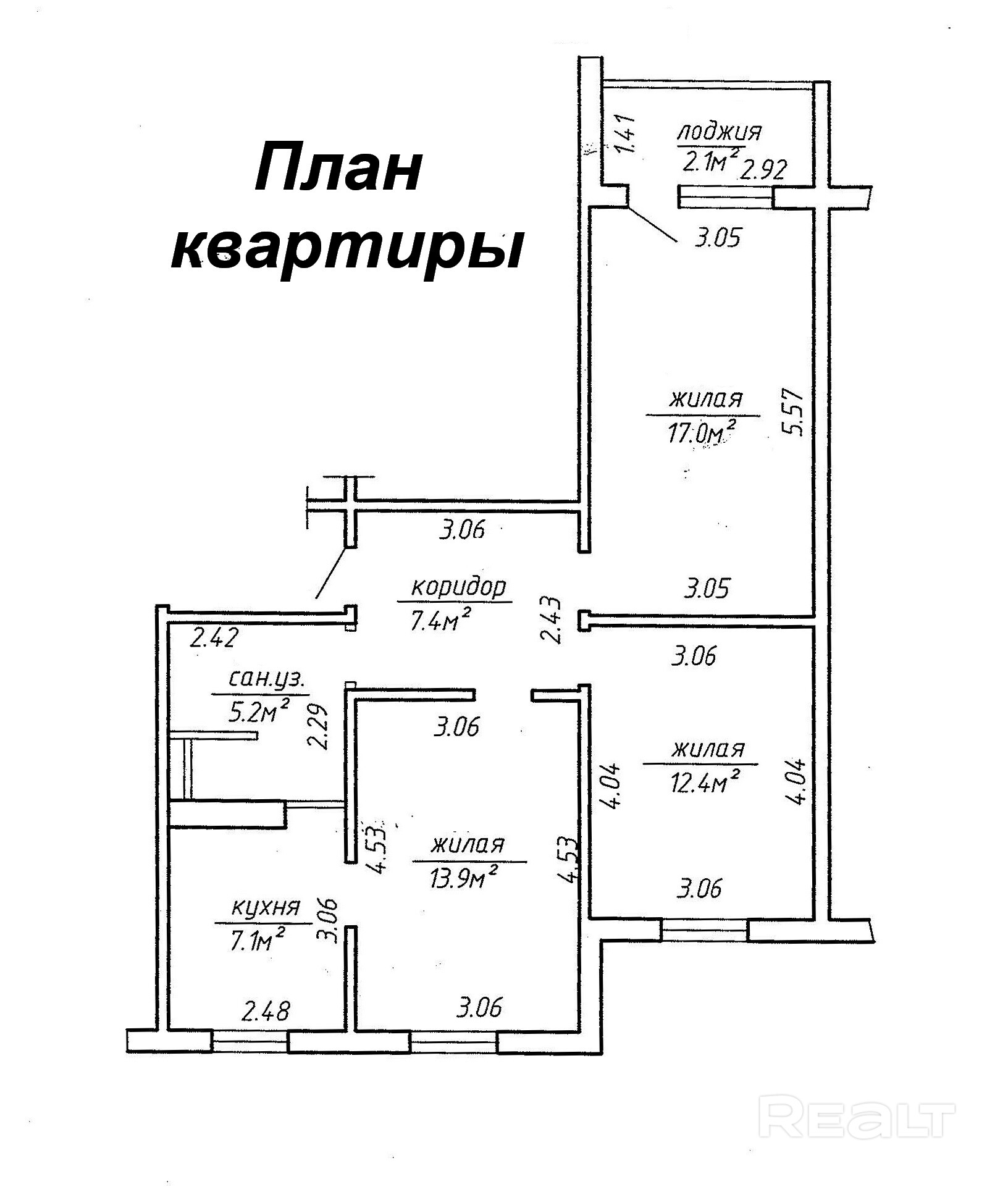 Уютная трехкомнатная квартира с зарегистрированной перепланировкой рядом с метро Уручье