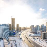 Зеленая парковая зона, международный финансовый центр и крупнейший торговый центр Авиа Молл в центре комплекса.