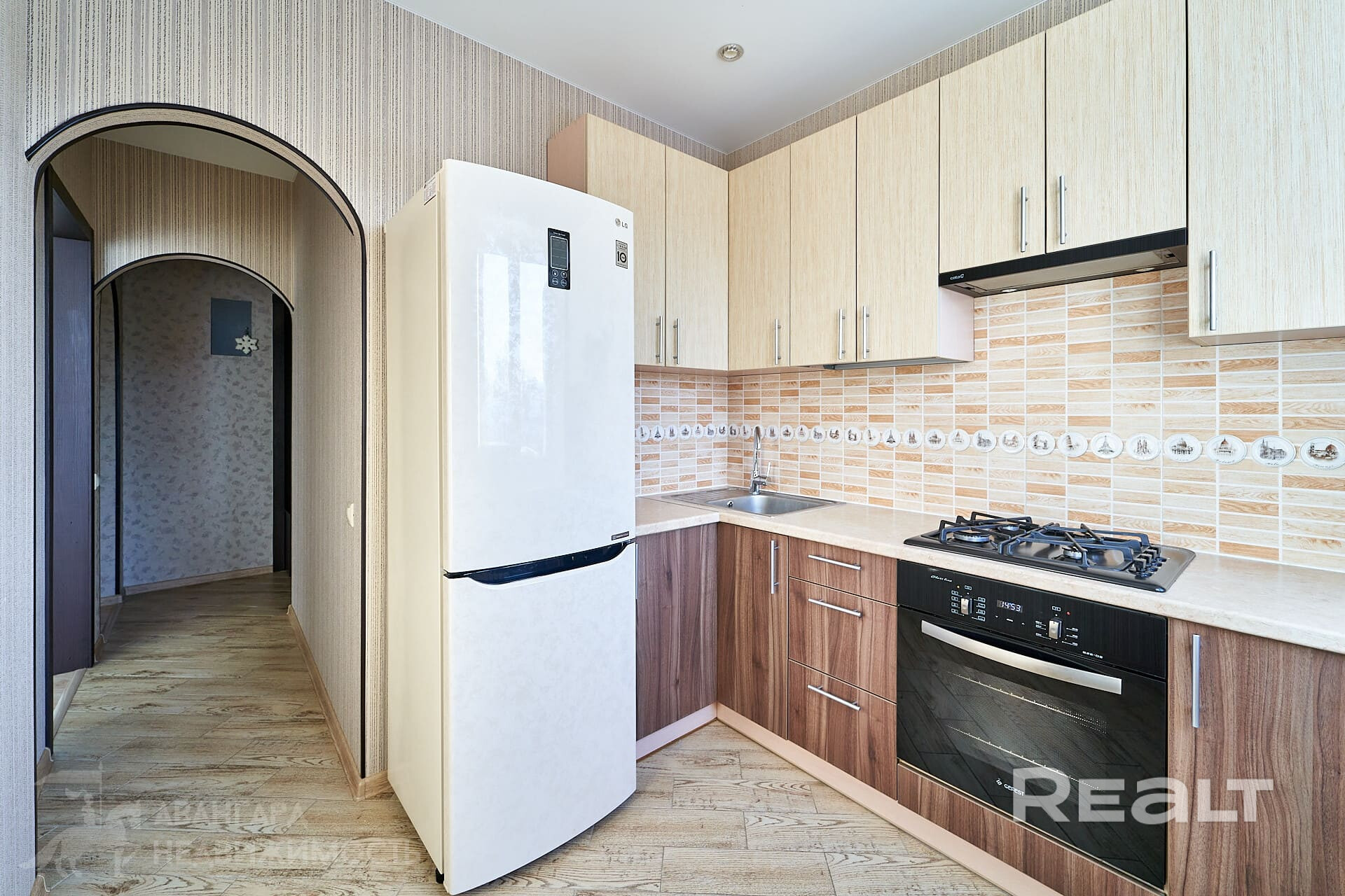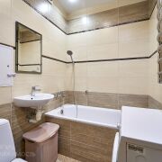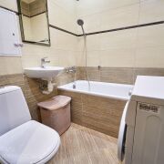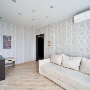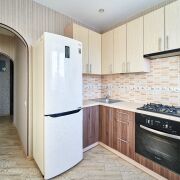 В квартире с нуля сделан ремонт, заменена проводка, новые пластиковые трубы, выровнены стены и оклеены обоями, на полу ламинат и плитка, натяжные потолки, встроенная кухня с техникой – варочная поверхность, духовой шкаф, вытяжка, холодильник, микроволновка, чайник, так же в квартире остается стиральная машина, телевизор, диван, встроенная мебель, шкаф-купе, кровать с матрасом. Установлен кондиционер.
