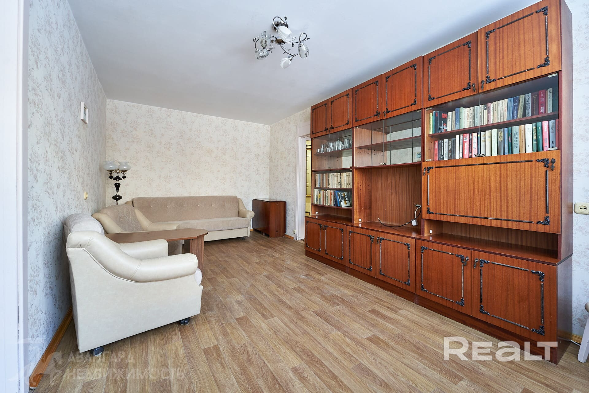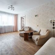 Аккуратная 2-комнатная квартира общей площадью – 44.4 м2, жилой – 32.9 м2, кухни – 5.7 м2 на 1-м высоком этаже 5-тиэтажного панельного дома 1964 года постройки в микрорайоне «Зеленый луг-2» на улице Седых, 38.