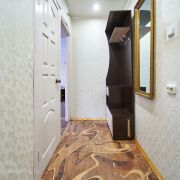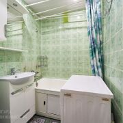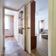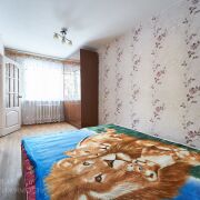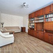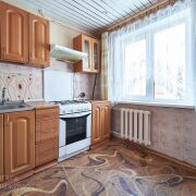 – Напольное покрытие – линолеум, стены – обои (в ванной комнате – плитка), потолок выровнен и окрашен. 2-камерные стеклопакеты ПВХ;