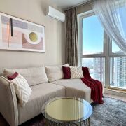 Идеальная планировка: просторная кухня-гостиная – 18 м2, гардеробная – 4 м2, отдельная спальня – 11,5 м2, совмещенный с/у – 4 м2, просторная лоджия с панорамными окнами. Кухня-гостиная зонирована и меблирована, установлен кондиционер для вашего комфорта, диван с раскладным механизмом. В квартире реализовано грамотное зонирование пространства, все продумано до мелочей. Функциональная кухня полностью оборудована всей бытовой техникой Weissgauff: варочная поверхность, вытяжка, посудомоечная машина, микроволновая печь, духовой шкаф, встроенный холодильник, обеденная группа. В ванной комнате установлена стиральная машина Weissgauff и проточный водонагреватель. Надежная входная металлическая дверь, просторная прихожая и гардеробная. Подключены все коммуникации и приборы учёта, оптоволоконная связь. В квартире остается всё!