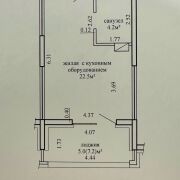 Квартира-студия удачной квадратной планировки с большой панорамной лоджией, что позволяет разделить квартиру на спальную зону, кухню-гостиную и кабинет. Окна выходят на солнечную сторону.