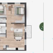 Квартиры на 1 этаже с личными участками-террасами с видом во двор и зеленый коридор.