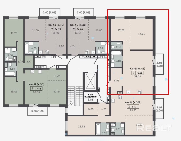 Квартира с кладовой 3,59м2.