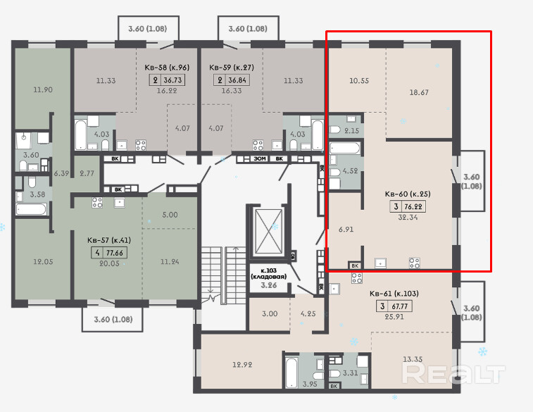 Квартира с кладовой 3,69м2.
