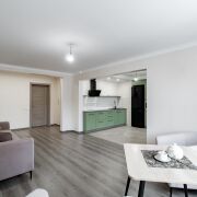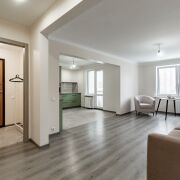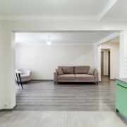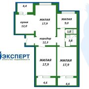 · Просторная изолированная планировка: большая светлая гостиная, объединённая с кухней, и три отдельные спальни.