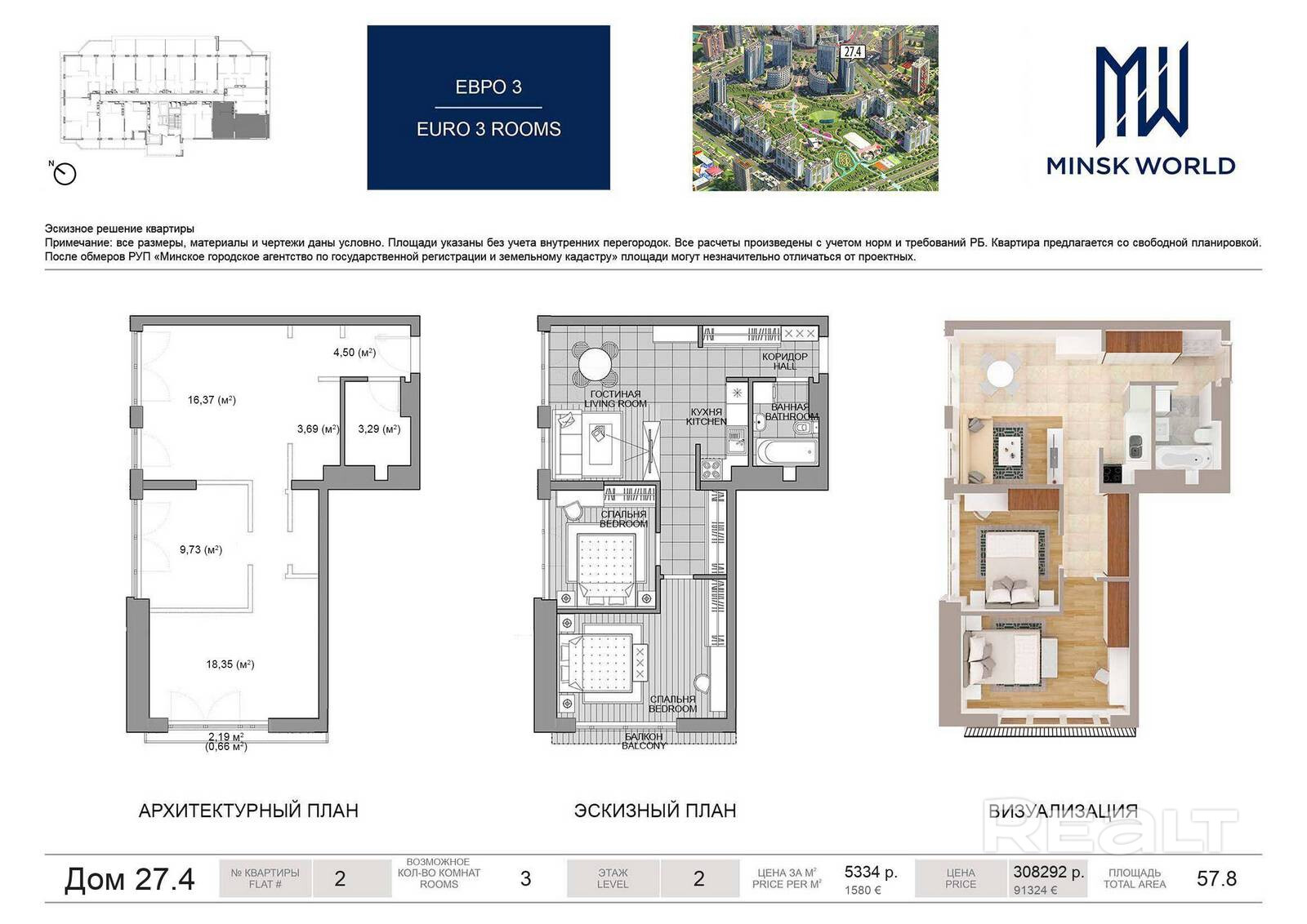Продается евротрешка в ЖК "Минск-Мир" Дом "«Ёёги парк»".
