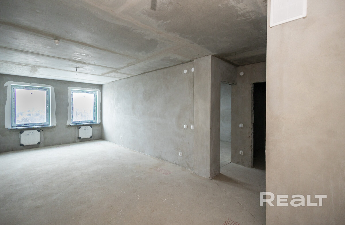 Отличная планировка (есть возможность возведения перегородки для второй изолированной комнаты) - большая кухня-гостиная, просторная спальня с выходом на широкую застеклённую лоджию. Качественная черновая отделка: стены оштукатурены, стяжка пола, разведена электрика с установкой розеток и выключателей, установлены радиаторы отопления (горизонтальная разводка труб отопления со счетчиками тепла), унитаз, счетчики воды и электроэнергии, двухкамерные стеклопакеты ПВХ, подведено оптоволокно. Квартира идеально подготовлена к чистовым работам! Окна выходят на юго-восток!