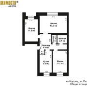 Общая площадь 63,8 м2, жилая площадь 40,9 м2, кухня 8,6 м2.