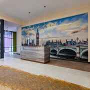 Дизайнерское лобби на входе в котором расположена стойка консьержа.