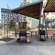 Двор без машин, территория огорожена и там расположены современные детские площадки, зоны отдыха для взрослых с настольными играми, мини огороды, зона барбекю и велобоксы!