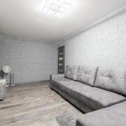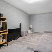 -Жилая комната оформлена в спокойной гамме: на полу ламинат, стены оклеены обоями. Пространство легко адаптируется под разные сценарии - от классической спальни до комбинированной зоны отдыха и работы.