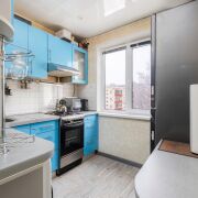 -Кухня выполнена в рабочем, удобном формате. На полу плитка, стены оклеены обоями, потолок - плиты. Встроенный кухонный гарнитур остаётся новым владельцам, как и вся кухонная обстановка, включая газовую плиту. Пространство организовано так, что готовить здесь удобно и комфортно, без лишних движений.