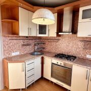 - Кухня укомплектована: остаётся фирменная плита, духовой шкаф и вытяжка.