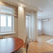 Качественный ремонт: паркетная доска во всей квартире, плитка на кухне, санузлах и 1 из лоджий. Импортная встроенная бытовая техника. Двухкамерное остекление, все 3 лоджии утеплены.