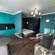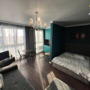 Яркая, акцентная кухня становится центром притяжения в этой студии. Шкафчики с доводчиками обеспечивают бесшумное и плавное открывание и закрывание, а встроенная техника отличается высоким качеством. Это пространство идеально подходит как для приготовления пищи, так и для уютных вечеров с друзьями или семьей. Уютная, отдельная зона отдыха с двуспальной кроватью, создаст идеальные условия для спокойного отдыха после насыщенного дня. В зоне гостиной установлен шикарный, огромный, мягкий диван и обеденная группа. Из панорамных окон квартиры и лоджии, открывается захватывающий вид на город. Ванная комната выполнена в элегантном дизайне с использованием современной сантехники и высокачественной плитки. Здесь вы сможете насладиться комфортом и уединением после напряженного дня. Вместительная гардеробная позволяет максимально эффективно использовать пространство, создавая ощущение порядка и гармонии в вашем доме.
