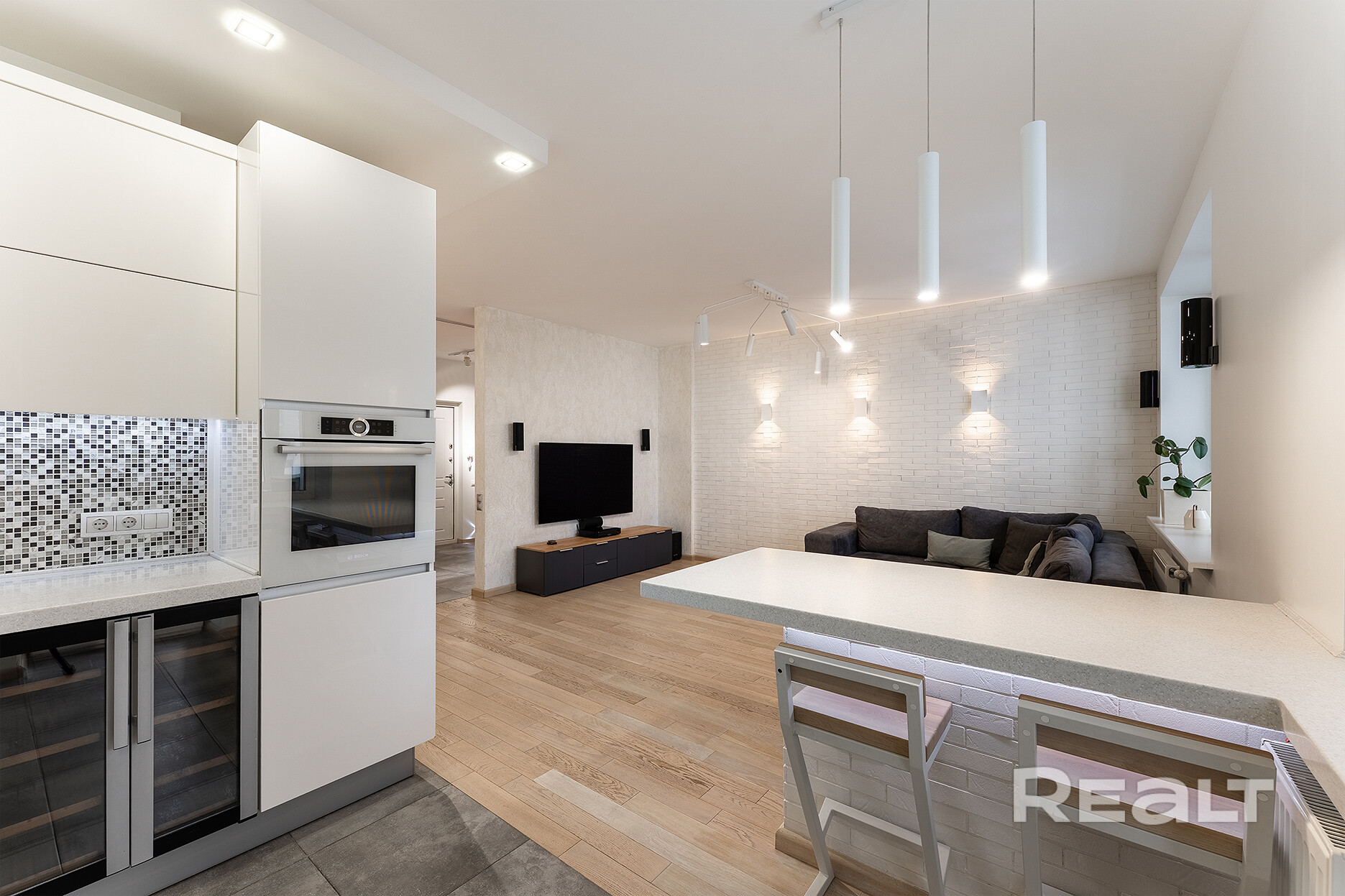В отделке использованы современные и долговечные материалы, которые создают комфортную атмосферу для жизни. Продуманная планировка, рациональное использование пространства, удобные зоны для отдыха и работы. В квартире сделана дополнительная шумоизоляция. Балкон утеплён, заменены стеклопакеты на двухкамерные, есть подогрев пола – можно использовать как рабочий кабинет. Во всей квартире дубовый паркет, плинтуса – дуб, потолки и стены – окрашены качественной краской, в квартире 4 зоны подогрева полов, розетки и электрика –Legrand. Вся техника Bosh , Siemens европейской сборки. Есть скрытый бойлер, винный шкаф, в детской магнитно-меловая доска на всю стену. Сделана продуманная гардеробная из спальни, полностью оборудована зонами хранения. Tv-oled LG 65 4k, есть зона домашнего кинотеатра - премиум акустика 5.1 Harman/Kardon, интернет по всей квартире, спутниковое ТВ с 2-мя головами.