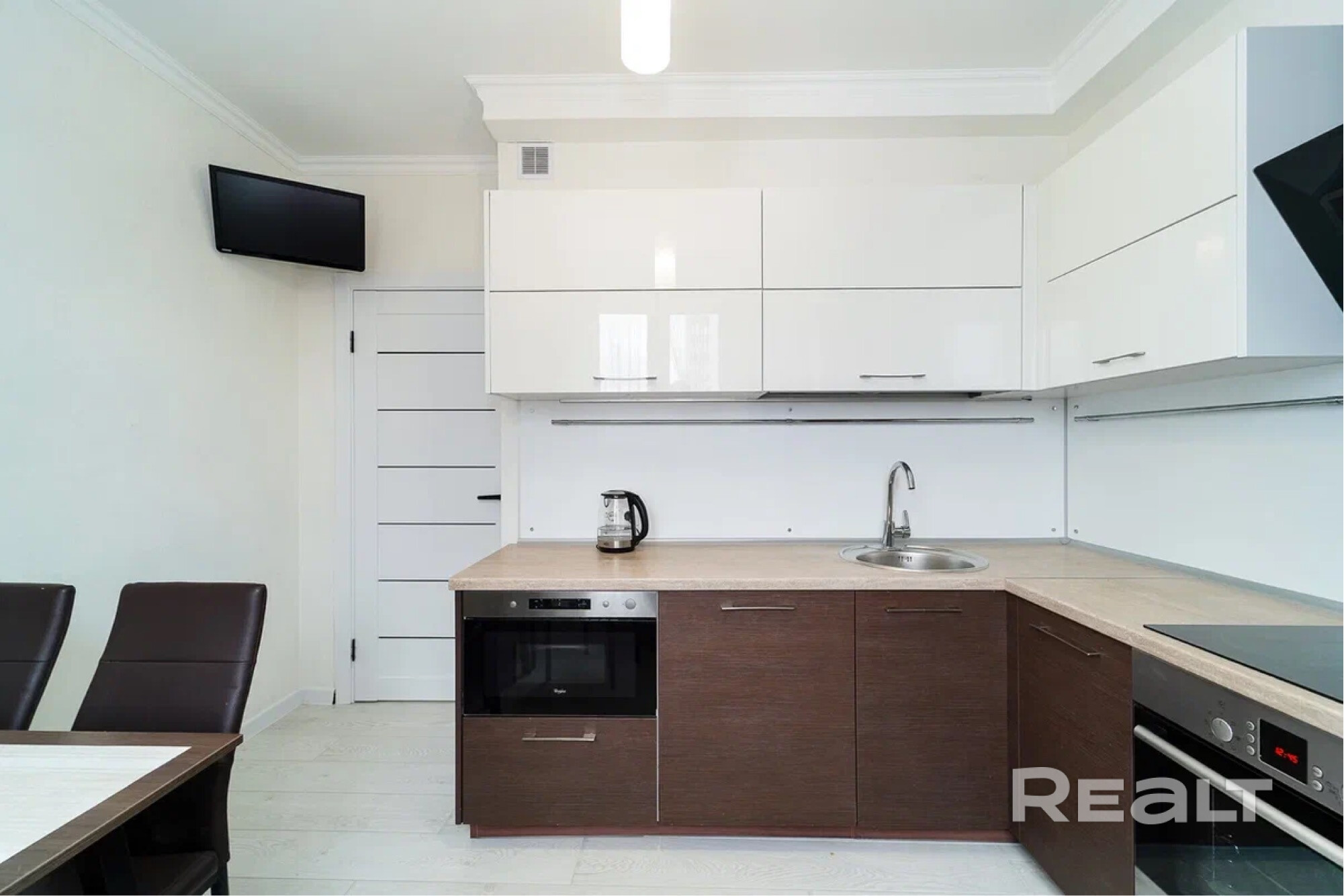 Просторная трехкомнатная квартира с раздельными изолированными комнатами и отличным ремонтом. Встроенная техника Bosch, импортная сантехника, водостойкий ламинат Tarket. Новый дом, шлагбаум, видеонаблюдение, большая парковка, детские площадки, рядом новые сады и школы. Высокий этаж с красивым видом. Остановка транспорта в паре минут от дома, до метро Уручье 7-10 минут на автобусе.
