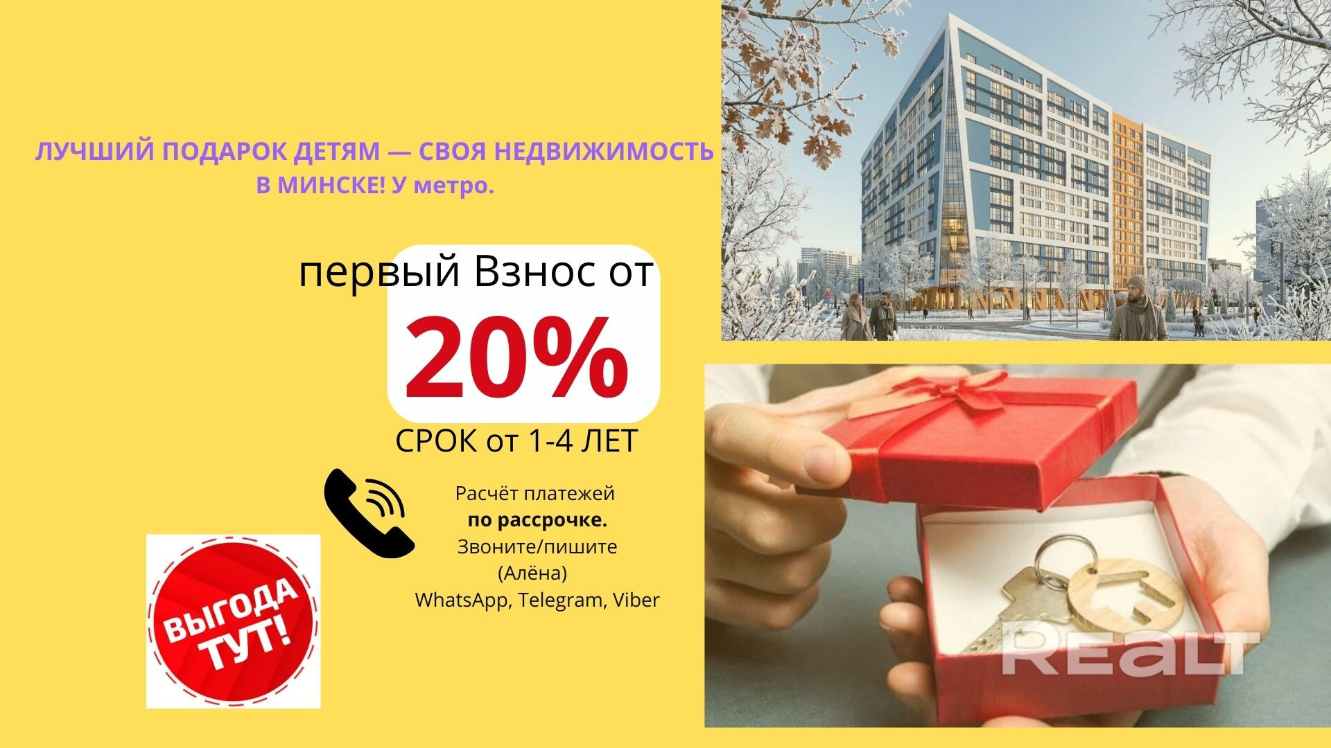 Лучший подарок ДЕТЯМ - Первая недвижимость! Взнос ВСЕГО от 20%. 💥 НЕ ЖДИ-Звони! Алёна