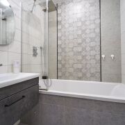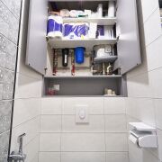 Сан.узел: раздельный. В современной плитке. В ванной комнате имеются места для хранения мелочей, установлена большая ванна, умывальник. В туалете установлена инсталляция, гигиенический душ и умывальник.