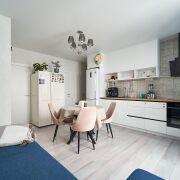 Кухня-гостиная: визитная карточка нашей квартиры, для сбора всей семьи и гостей. Полноценная обеденная зона и кухонная мебель с качественной фурнитурой и материалами.