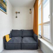 В гостиной зоне расположен диван для вашего отдыха и имеется место для размещения ТВ зоны и вывод для кондиционера.