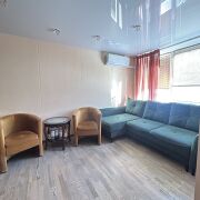 Квартира расположена на первом этаже девятиэтажного кирпичного дома. Аккуратный подъезд, хорошие соседи. Тамбур на 2 квартиры, металлическая входная дверь, из трех комнат две раздельные. На полу в квартире паркетная доска, в кухне мармолеум, в сан.узле плитка, натяжные потолки, окна из ПВХ профиля; на стенах декоративная штукатурка, в сан узле плитка; встроенные шкафы-купе, свежая кухня с качественными фасадами, столешницей из искусственного камня и доводчиками Blum.В гостиной установлен кондиционер.