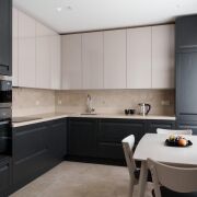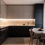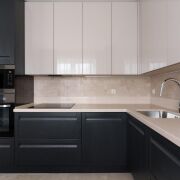 - Кухня изготовлена из массива дерева верхние шкафчики с акриловым покрытием. Установлена мойка Blanco, известная надёжной эксплуатацией и стойкостью материалов.