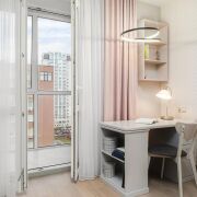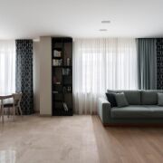 - Площадь 69,8 кв.м создаёт хорошее пространство для жизни. Жилая зона 61,7 кв.м распределена таким образом, чтобы каждая часть квартиры работала на практичность.