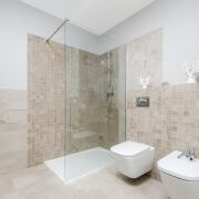 - Совмещённый санузел оформлен плиткой и оборудован современной сантехникой GROHE, ROCA. Рациональная организация пространства позволяет разместить всё необходимое без потерь площади.