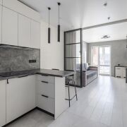 · стильная стеклянная перегородка для зонирования пространства