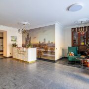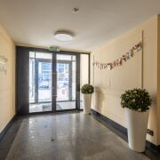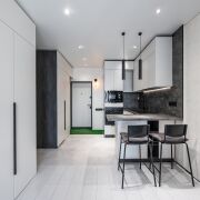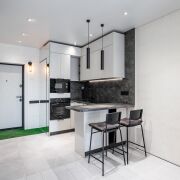 Дизайнерское лобби: зона отдыха, туалетная комната и местом для мытья лап домашних животных.