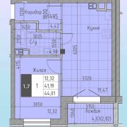 - Современная планировка 44,1 м2 по СНБ: изолированная жилая комната 12,32 м2 и просторная кухня-гостиная 19,47 м2.