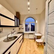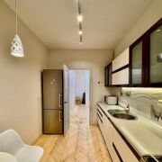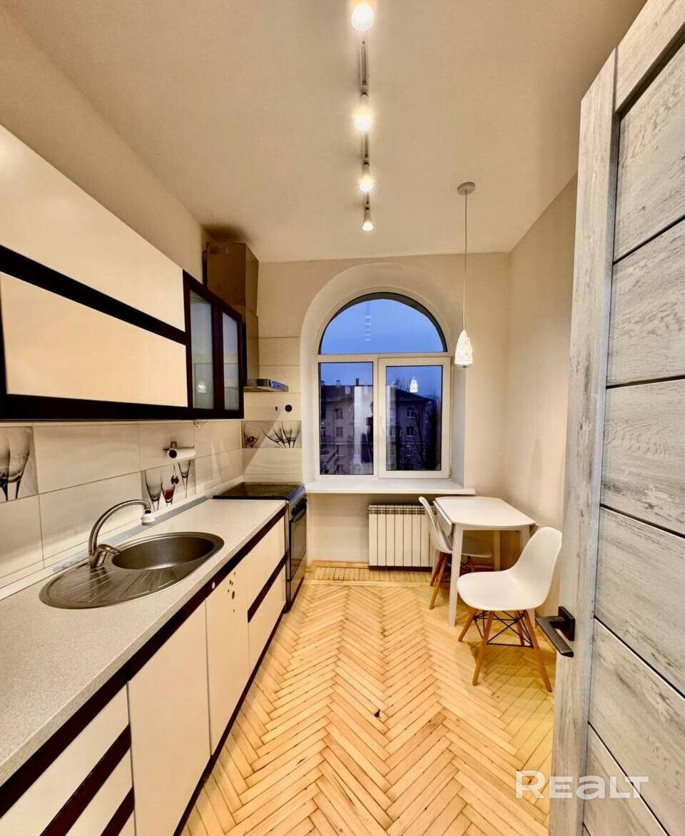Квартира солнечная, тёплая, высота потолков и арочные окна с широченными подоконниками, которые выходят на разные стороны, придают ей особый шарм. Из -за широких стен в квартире идеальная шумоизоляция. На полу уложен паркет, в санузлах качественная сантехника, новые межкомнатные двери. Встроенная кухня с посудомоечной машиной и газовой плитой. В коридоре 2 встроенных шкафа. Остальная мебель по договорённости.