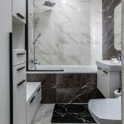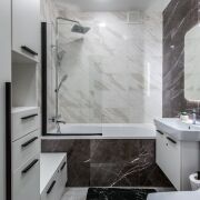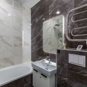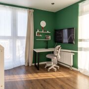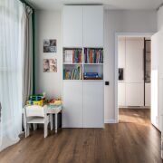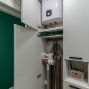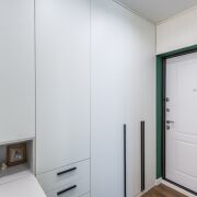 Максимально продуманы места хранения: на входе в прихожей удобные вместительные шкафы, в совмещенном санузле предусмотрен хозблок с бойлером, в детской комнате шкафы для одежды и игрушек.