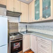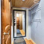 - Выполнен хороший ремонт. Деревянные полы в коридоре отшлифованы и покрыты лаком, в комнате окрашены. Навесная кухня обеспечивает дополнительные места для хранения.