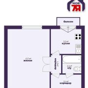 - Квартира площадью 29,9 кв.м с комнатой 17,7 кв.м и кухней 5,2 кв.м. Потолки 3 метра, что делает пространство более объемным и светлым. Планировка позволяет разместить всё необходимое.