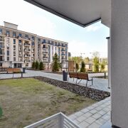 Окна квартиры выходят в уютный зеленый внутренний дворик.