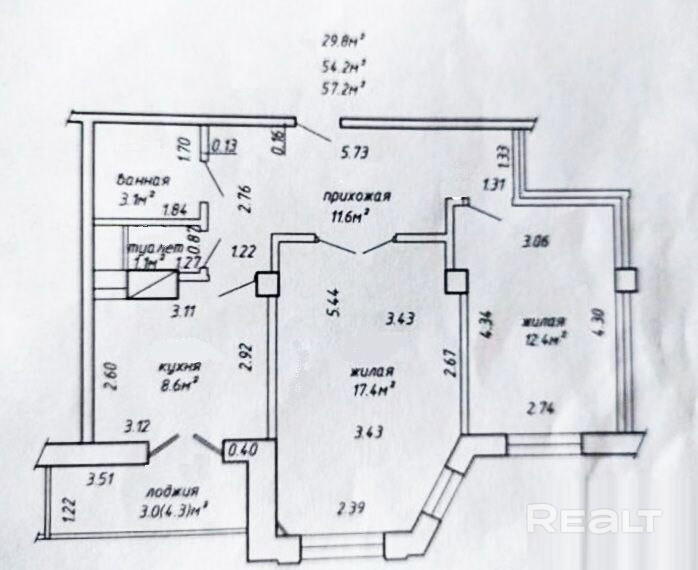 57.2 м²