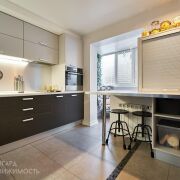 Из кухни предусмотрен выход на застекленную лоджию. Снаружи есть металлические роллеты, что обеспечивает дополнительную безопасность и приватность.