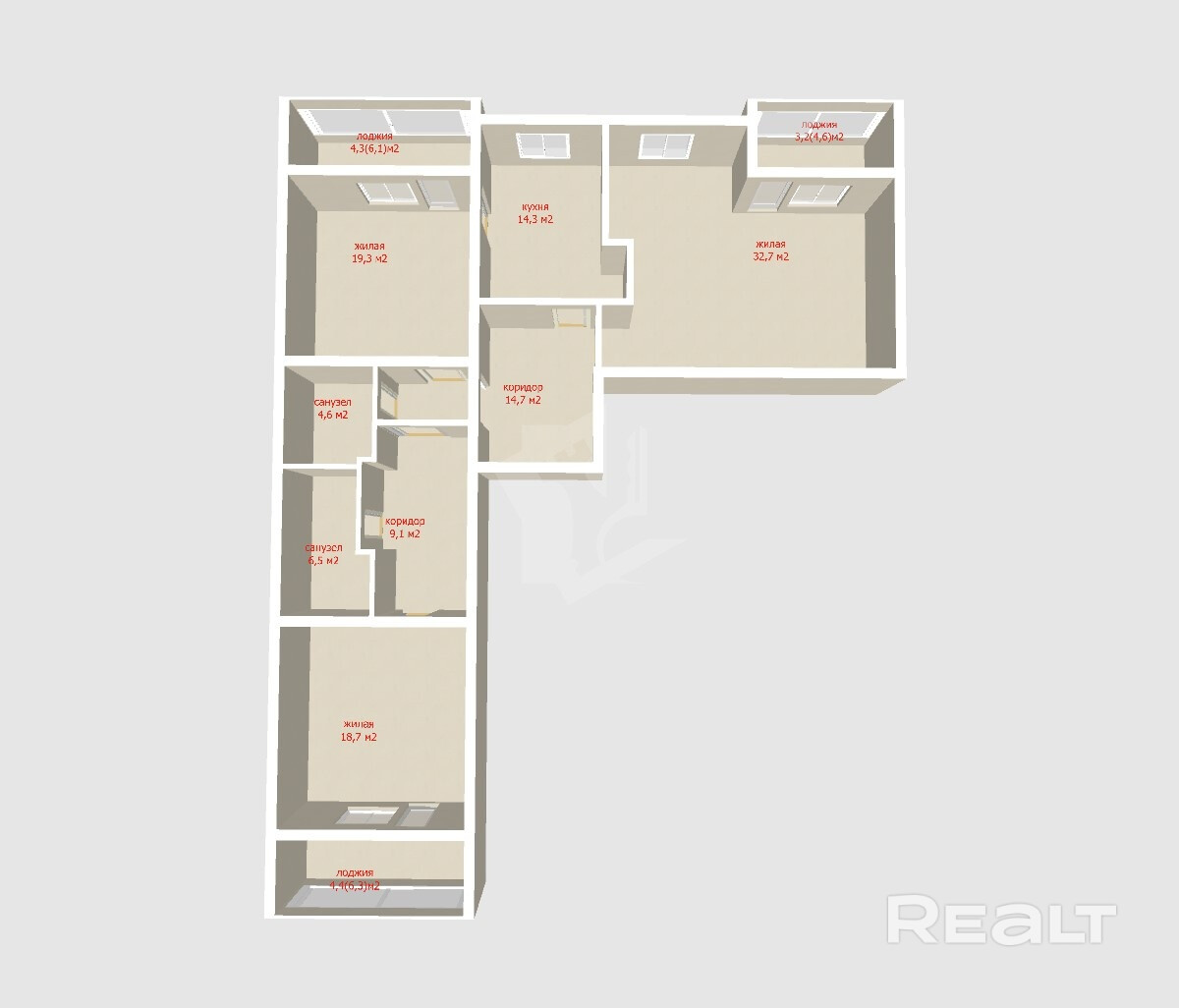 • Квартира: Большая площадь, очень хорошая планировка. 2 санузла, 3 лоджии. Готовый «бетон» для вашей отделки.