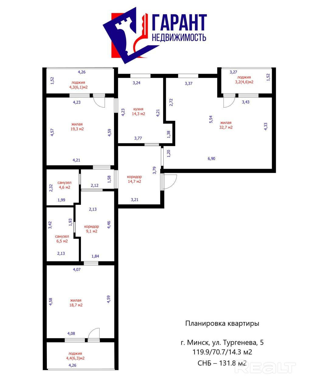·  Площадь: СНБ – 131,8 м2/ Общая – 119,9 м2/ Жилая – 70.7 м2.