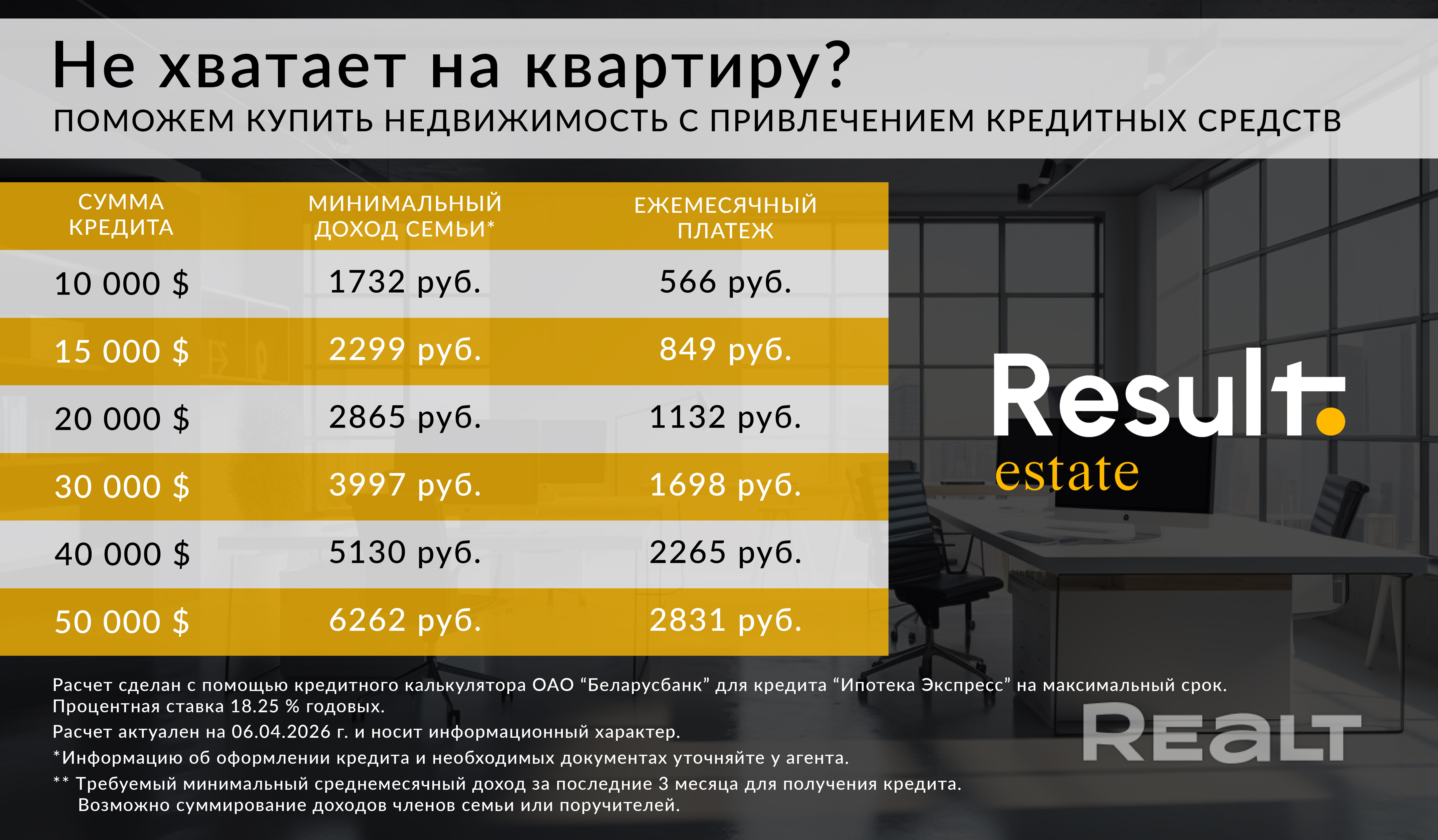 ООО «Результативная недвижимость», лицензия выдана Минюстом 26.09.2023 № 02240470, УНП 193703497